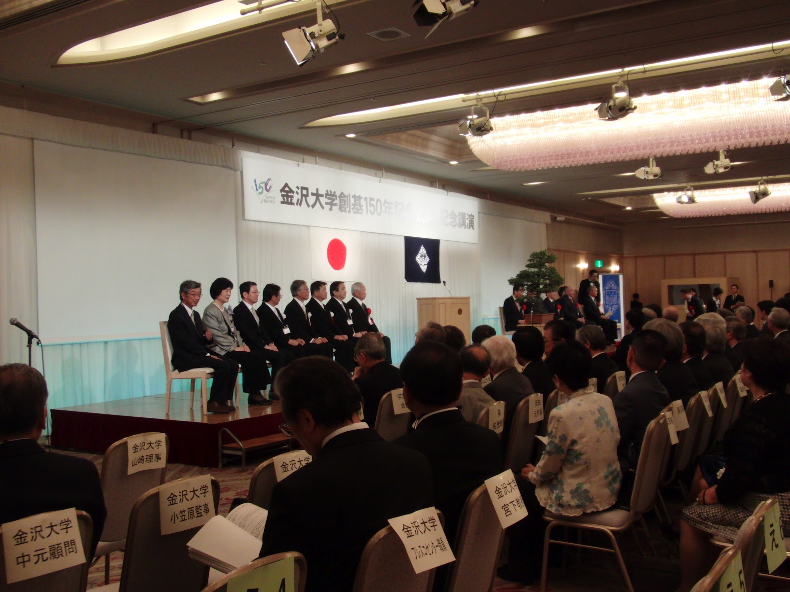 平成二十四年五月三十日(水)、ホテル日航金沢にて金沢大学創基百五十年記念式典・記念講演・記念祝賀会が行われました。私は物理学科同窓会の幹事という事で案内状が届きまして、行って参りました。