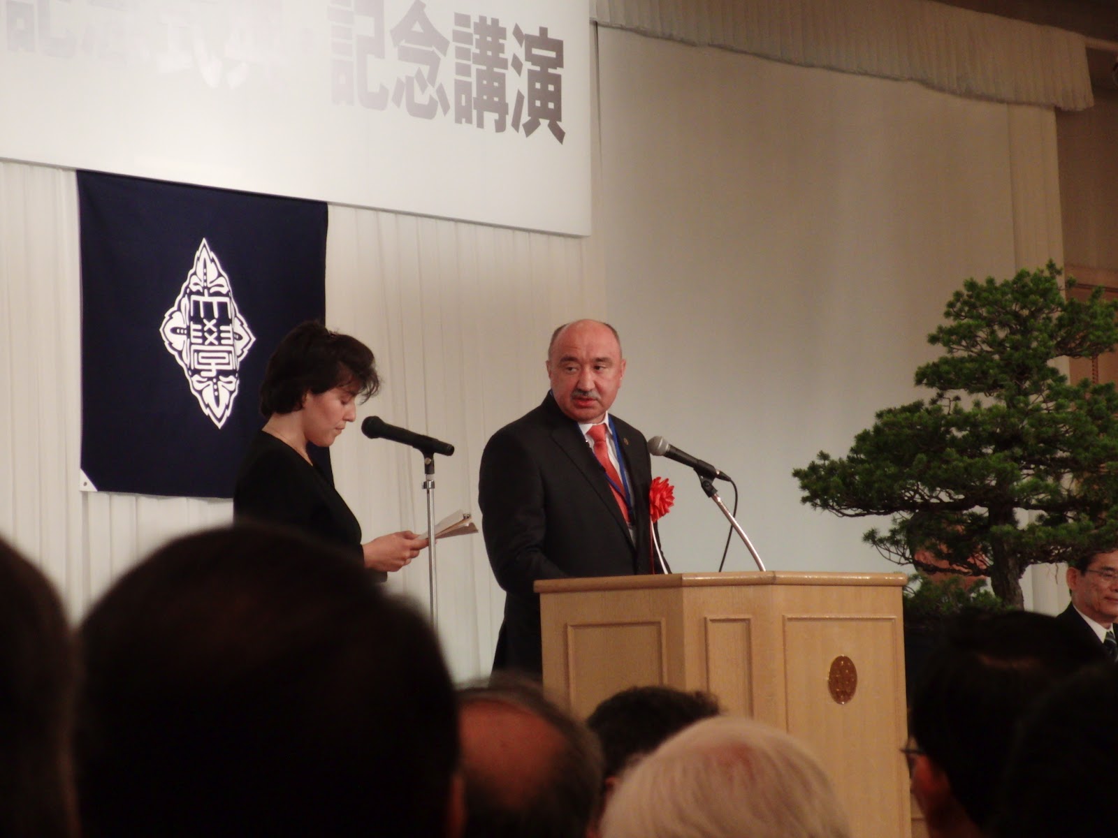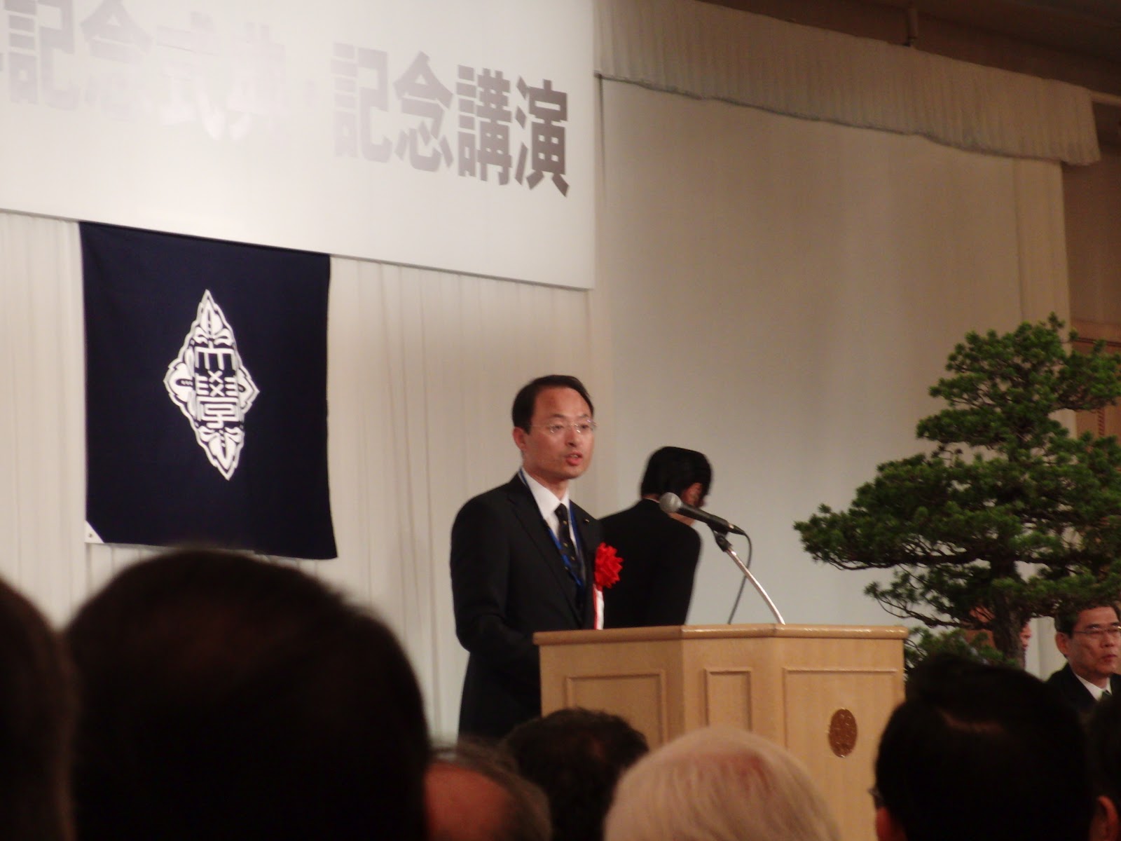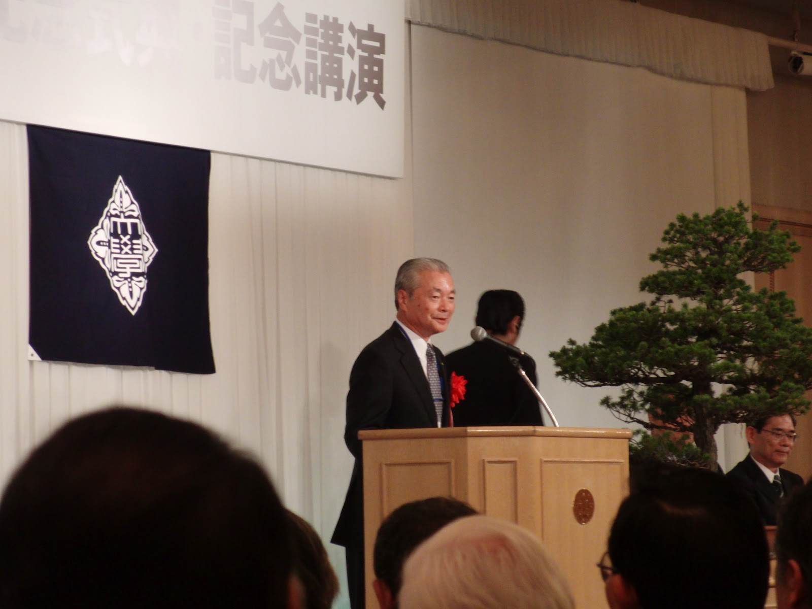 記念式典及び記念講演は三階の孔雀の間。受付が午後一時からで一時十五分頃受付したのですが、まだ来訪者が少なく、スタッフがピリピリしているのが伝わって来ました。でもそうこうしているうちに受付の前は賑わってきたのですが。